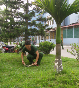 Nội dung: Thi thực hiện tốt về chăm sóc vườn hoa, cây xanh thuộc khu vực được phân công; thi thực hiện tốt các quy định về công tác vệ sinh nhà ở, vệ sinh môi trường; thi thực hiện tốt các quy định về trật tự, nội vụ; thi thực hiện tốt các quy định về bảo quản doanh cụ, doanh trại, sử dụng điện nước tiết kiệm.