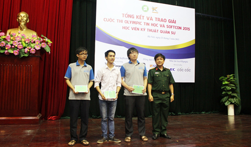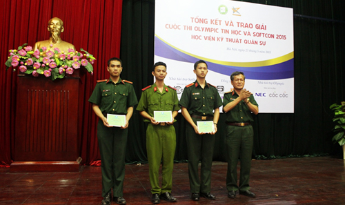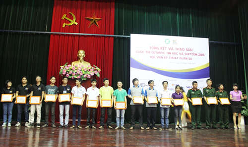 Sáng 23/5, tại Hội trường S5, Học viện KTQS đã tổng kết và trao giải kỳ thi Olympic Tin học cấp Học viện lần thứ IV. Tham dự buổi tổng kết có Thiếu tướng Nguyễn Thiện Chất – Phó Chính ủy Học viện, Trung tướng GS. TSKH Phạm Thế Long – nguyên Giám đốc Học viện; đại diện các phòng chức năng, đại diện các đơn vị quản lý học viên; cán bộ, giáo viên Khoa Công nghệ thông tin (CNTT) cùng đông đảo học viên, sinh viên Học viện. Về phía khách mời có Đại tá TS Phạm Việt Trung – Phó Cục trưởng Cục CNTT/BQP; đại diện nhà trường và đông đảo sinh viên các trường Đại học Bách Khoa Hà Nội, Học viện Công nghệ Bưu chính viễn thông, Đại học Kinh doanh và Công nghệ, Học viện An ninh nhân dân, Đại học Ngoại thương, Đại học Điện lực; đại diện các nhà tài trợ là Công ty Cốc Cốc, Công ty NEC Việt Nam, Công ty Gameloft, Ngân hàng SHB chi nhánh Tây Nam Hà Nội, Học viện Bách khoa Aptech.