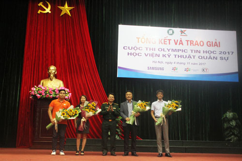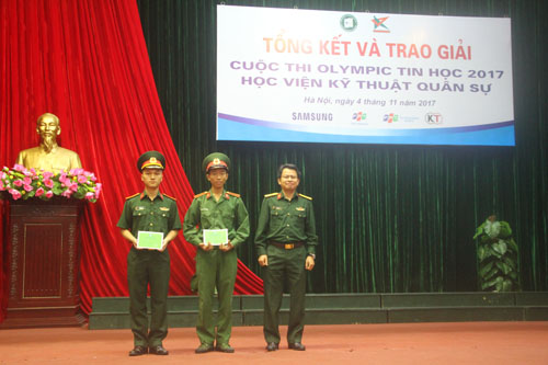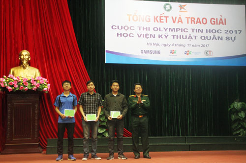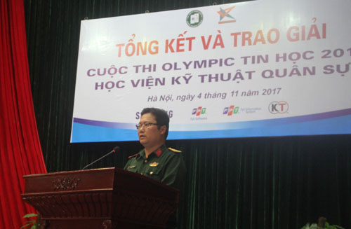 Chiều 4/11, tại Hội trường S5 đã diễn ra buổi tổng kết và trao giải cuộc thi Olympic Tin học cấp Học viện năm 2017. Đến dự buổi tổng kết và trao giải, về phía Học viện có Thượng tá PGS. TS Bùi Thu Lâm – Chủ nhiệm Khoa Công nghệ thông tin (CNTT), đại diện cho đơn vị tổ chức cuộc thi; đại diện Phòng Chính trị, Phòng Đào tạo, các đơn vị quản lý học viên cùng đông đảo học viên, sinh viên trong Học viện.