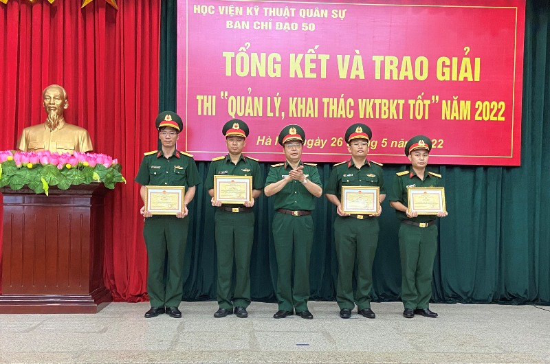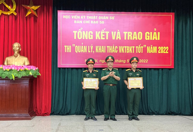 Thực hiện Kế hoạch Công tác kỹ thuật năm 2022, Kế hoạch số 266/KH-BCĐ ngày 20/01/2022 của Ban Chỉ đạo 50 Học viện về việc tổ chức Hội thi “Quản lý, khai thác VKTBKT tốt” năm 2022, ngày 26/5/2022, Học viện đã tổ chức Tổng kết và trao giải cho các kíp, nhóm có thành tích tốt trong Hội thi. Tới dự có Trung tướng Nguyễn Công Định – Giám đốc Học viện; các đồng chí trong Ban Chỉ đạo CVĐ50 Học viện; đại diện chỉ huy các đầu mối trực thuộc Học viện; các đồng chí trong Ban chấm thi, tiểu ban chấm thi; đại diện chỉ huy các bộ môn thuộc các khoa, viện, trung tâm trong Học viện cùng toàn thể cán bộ, nhân viên kỹ thuật (NVKT) tham gia thi.
