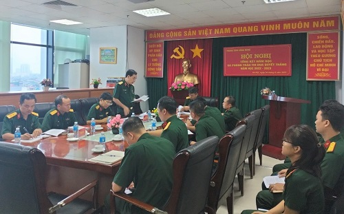 Tại Hội nghị, Đại tá Tạ Hữu Vinh – Phó trưởng Trung tâm đã trình bày dự thảo Báo cáo Tổng kết năm học 2022-2023 và Báo cáo Tổng kết phong trào thi đua Quyết thắng năm học 2022-2023. Các báo cáo nhấn mạnh, trong năm học vừa qua, Trung tâm đã đạt được nhiều thành tích đáng khích lệ, cụ thể: toàn Trung tâm đã đoàn kết, gắn bó, khắc phục khó khăn hoàn thành tốt nhiệm vụ trong năm học đúng định hướng phát triển theo Đề án phát triển TTCN; phát huy tốt chức năng, nhiệm vụ của Trung tâm phù hợp với yêu cầu nâng cao năng lực NCKH, sản xuất, chế thử, thiết kế, phát triển sản phẩm, tìm kiếm và chuyển giao công nghệ (đề xuất 02 đề tài NAFOSTED, 04 đề xuất đề tài cấp Học viện, 01 đề xuất sáng kiến năm 2023, 01 đề xuất gửi Sở KH&CN Hà Nội, 02 đề xuất gửi Chương trình KC03, 01 đề xuất gửi chương trình HKVT); tham gia và đạt 04 giải thưởng Tuổi trẻ sáng tạo trong Quân đội (chủ trì 01 giải Nhì và 01 Khuyến khích; tham gia 01 giải Nhất, 01 giải Nhì); tham gia 02 sáng kiến kỹ thuật (11/2022); viết và đăng 27 công bố khoa học (11 bài báo trên tạp chí ISI/Scopus, 02 tạp chí quốc tế, 05 Hội nghị quốc tế Scopus; 03 hội nghị trong nước, 02 tạp chí trong nước…; tải NCKH vượt 437% so với chỉ tiêu năm học; thẩm định trên 100 bộ hồ sơ dấu “T, A, B” cho các hồ sơ thiết kế trong Học viện).