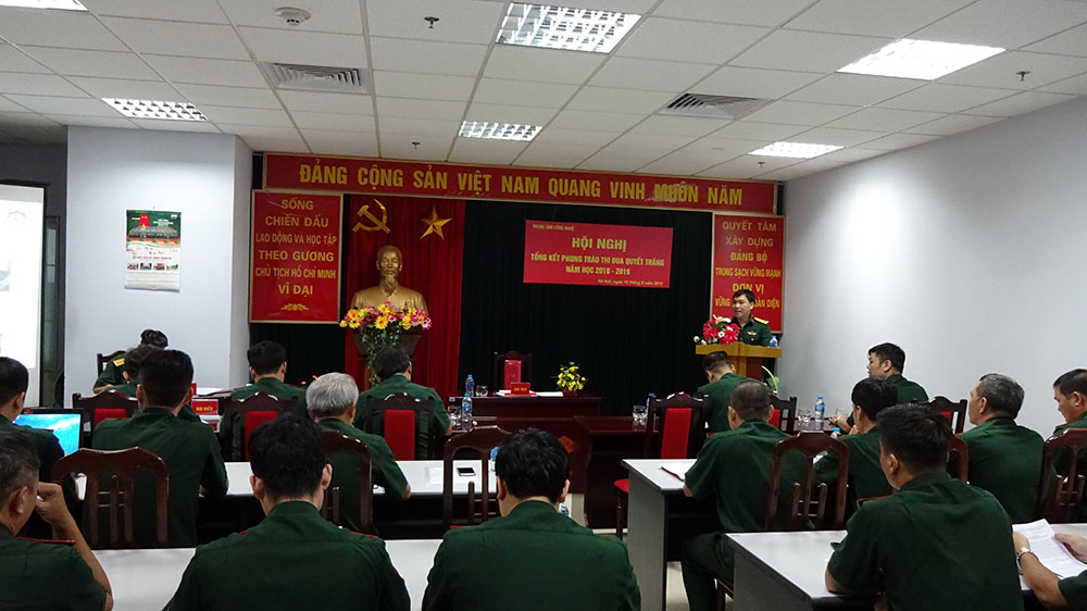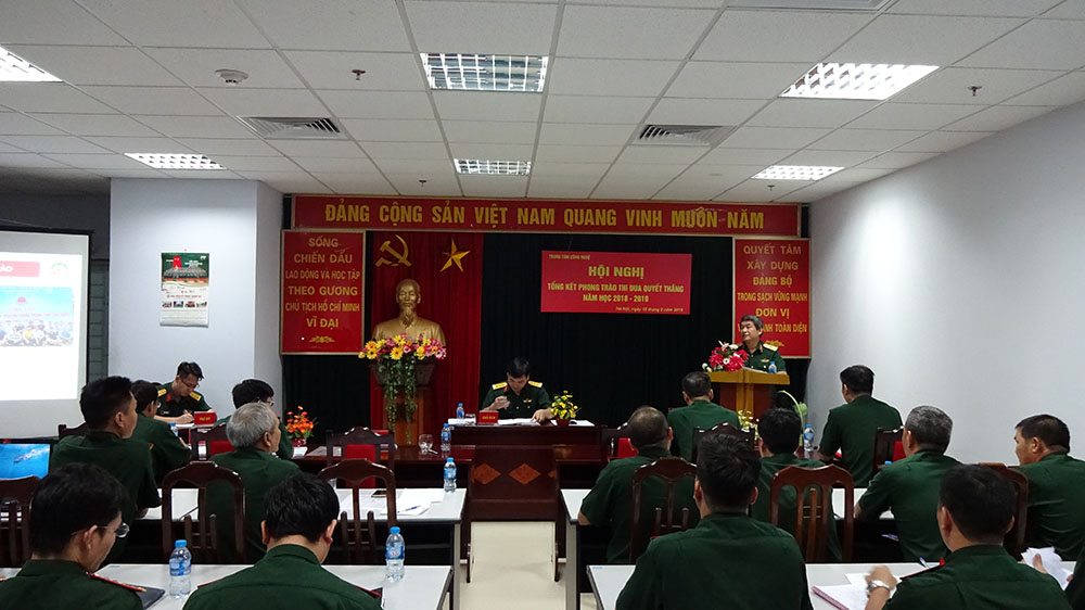 Thay mặt Ban Chỉ huy Trung tâm, Thượng tá Phạm Quốc Hoàng – Trưởng Trung tâm đã đọc Dự thảo Báo cáo tổng kết phong trào thi đua Quyết thắng năm học 2018 – 2019. Báo cáo nêu bật những kết quả đạt được trong quá trình tổ chức thực hiện nhiệm vụ, hoàn thành các nội dung của kế hoạch công tác năm học, đồng thời đề ra phương hướng, nhiệm vụ cho năm học 2019 – 2020 với các mục tiêu cụ thể.