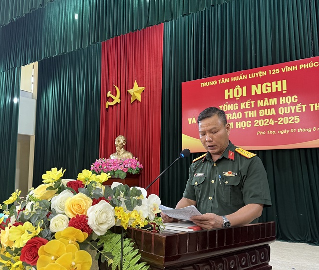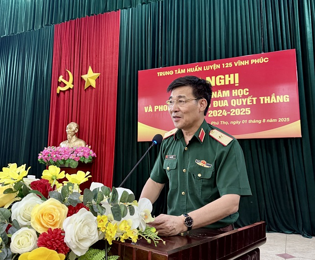 Chiều 01/8/2025, Trung tâm Huấn luyện 125 Vĩnh Phúc đã tổ chức Hội nghị Tổng kết năm học và Phong trào Thi đua Quyết thắng (TĐQT) năm học 2024-2025. Tới dự và chỉ đạo Hội nghị có Thiếu tướng Lê Anh Tuấn – Đảng ủy viên, Phó Giám đốc Học viện; đại diện chỉ huy Phòng Chính trị, Phòng Đào tạo, Phòng Hậu cần-Kỹ thuật, Văn phòng cùng toàn thể cán bộ, giáo viên, nhân viên, chiến sĩ trong đơn vị. Đại tá Nguyễn Việt Trung – Phó Trưởng trung tâm chủ trì Hội nghị.