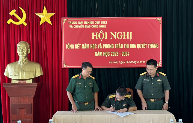 Chiều 06/8/2024, tại Hòa Lạc, Trung tâm Nghiên cứu bảo đảm kỹ thuật và chuyển giao công nghệ (BĐKT&CGCN) đã tổ chức Hội nghị Tổng kết năm học và phong trào TĐQT năm học 2023-2024. Tham dự Hội nghị có đại biểu Phòng Chính trị, Phòng Hậu cần-Kỹ thuật, Văn phòng, Ban Tài chính và toàn thể cán bộ, nhân viên, chiến sĩ trong đơn vị.