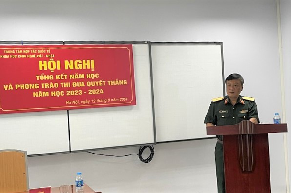 Chiều 12/8, Trung tâm Hợp tác quốc tế khoa học công nghệ Việt – Nhật (Trung tâm Việt – Nhật) đã tổ chức Hội nghị Tổng kết năm học và phong trào TĐQT năm học 2023-2024. Tới dự và chỉ đạo Hội nghị có Thiếu tướng Mai Quang Huy – Phó Giám đốc Học viện. Tham dự Hội nghị còn có các đại biểu Phòng Chính trị, Phòng Đào tạo, Phòng Khoa học Quân sự, Phòng Hợp tác quốc tế và Quản lý lưu học sinh quân sự cùng toàn thể các đồng chí cán bộ, nhân viên Trung tâm.