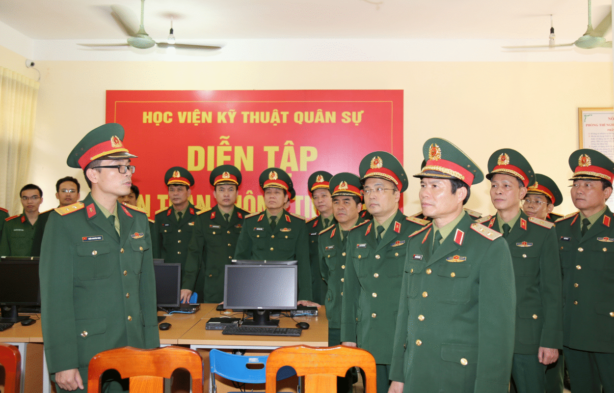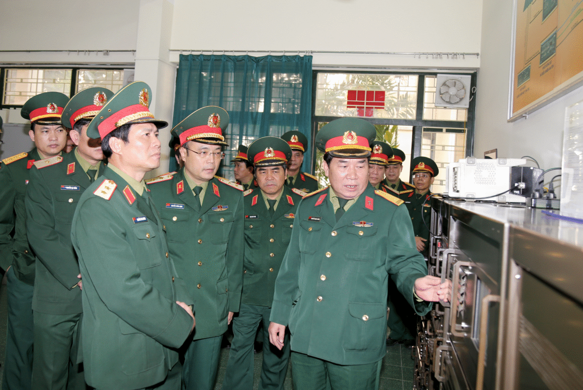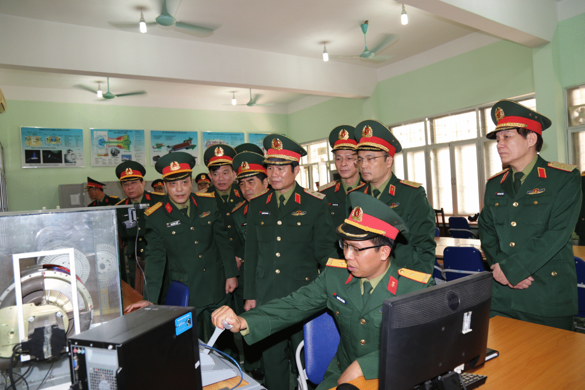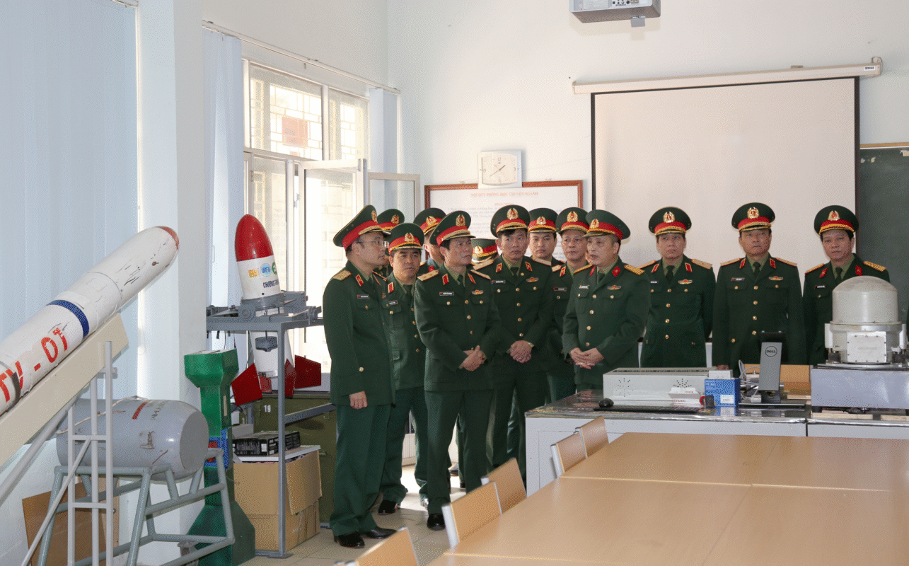 Cũng tại buổi làm việc, Trung tướng Nguyễn Tân Cương và Đoàn công tác Bộ Quốc phòng đã đi thăm một số cơ sở kỹ thuật của Học viện như: PTN Kỹ thuật Sonar, Phòng học chuyên dùng Thiết kế chế tạo tên lửa, Phòng học Ngoại ngữ, Trường bắn ảo…