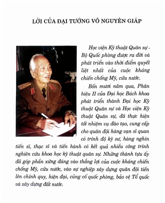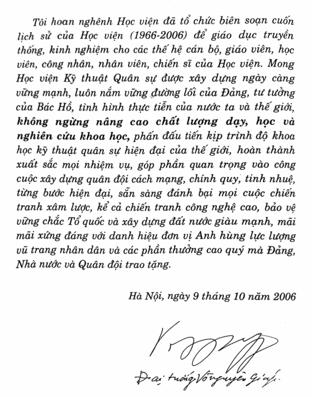 Tài liệu trích lời của Đại tướng Võ Nguyên Giáp nhân dịp đến thăm Học viện KTQS vào ngày 09/10/2006.