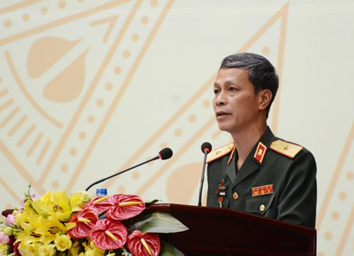 Thiếu tướng Cao Minh Tiến phát biểu tại Đại hội.