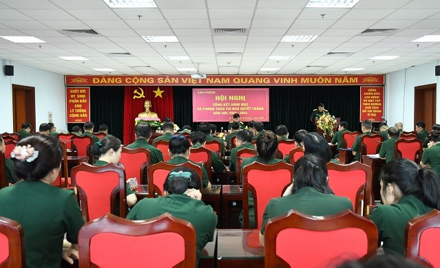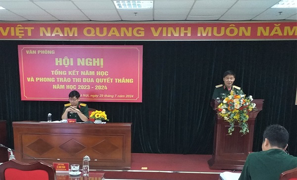 Tại Hội nghị, Đại tá Trần Đình Thành – Chánh Văn phòng, chủ trì Hội nghị đã trình bày dự thảo Báo cáo Tổng kết năm học 2023-2024; Đại tá Nguyễn Hữu Dũng – Bí thư Đảng ủy, Phó Chánh Văn phòng trình bày dự thảo Báo cáo Tổng kết phong trào TĐQT năm học 2023-2024. Các báo cáo tập trung tổng kết, đánh giá kết quả, rút ra nguyên nhân mạnh, yếu và bài học kinh nghiệm trong lãnh đạo, chỉ đạo và triển khai thực hiện nhiệm vụ và phong trào TĐQT năm học 2023-2024, đồng thời xác định phương hướng, mục tiêu, nhiệm vụ, giải pháp thực hiện trong năm học 2024-2025.