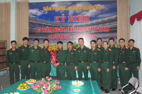 Sáng 27/3/2019, Văn phòng và Khoa Quân sự đã phối hợp tổ chức buổi Kỷ niệm 73 năm Ngày Thể thao Việt Nam (27/3/1946 – 27/3/2019) và gặp mặt thân mật các đồng chí làm công tác Thể dục thể thao (TDTT) trong Học viện. Dự buổi Kỷ niệm có các đồng chí trong Đảng ủy, Ban Giám đốc cùng lãnh đạo, chỉ huy các cơ quan, đơn vị trong toàn Học viện.