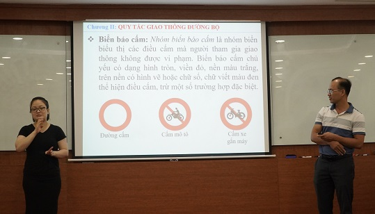 Tại buổi tập huấn, các đồng chí cán bộ của Viện Cơ khí động lực đã giới thiệu cho các bạn học viên lớp học nắm được các Quy tắc giao thông đường bộ, hệ thống biển báo hiệu đường bộ Việt Nam, cách xử lý các tình huống giao thông; văn hóa giao thông… Do đây là nội dung mới, lần đầu tiên các bạn mắc bệnh dị tật điếc bẩm sinh được tiếp cận nên rất hào hứng, sôi nổi, tích cực đặt câu hỏi, bày tỏ quan điểm của bản thân về các biển báo, tình huống giao thông.