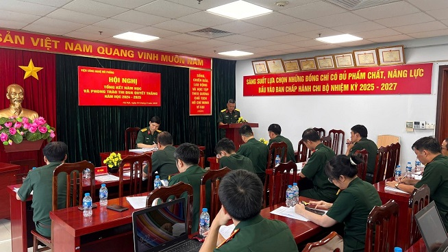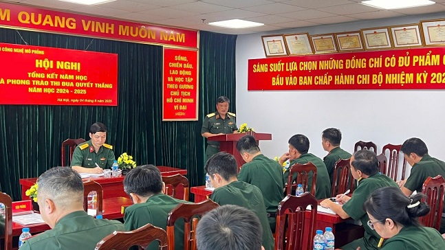 Hội nghị đã được nghe Đại tá Trương Quốc Hùng báo cáo tổng kết thực hiện nhiệm vụ năm học 2024-2025; Đại tá Nguyễn Trung Kiên – Bí thư Chi bộ Viện Công nghệ mô phỏng báo cáo tổng kết Phong trào TĐQT năm học 2024-2025. Trong năm qua, Chi bộ, chỉ huy Viện và các phòng, xưởng đã lãnh đạo, chỉ đạo, triển khai có hiệu quả Phong trào TĐQT gắn với đẩy mạnh học tập và làm theo tư tưởng, đạo đức, phong cách Hồ Chí Minh và NQTW 4 (khóa XII) về tăng cường xây dựng, chỉnh đốn Đảng; Chỉ thị số 855-CT/QUTW ngày 12/8/2019 của Thường vụ QUTW về đẩy mạnh Cuộc vận động Phát huy truyền thống, cống hiến tài năng, xứng danh “Bộ đội Cụ Hồ” thời kỳ mới. Tiếp tục triển khai thực hiện nghiêm túc phương châm “Chất lượng đào tạo của nhà trường là khả năng sẵn sàng chiến đấu của đơn vị”.